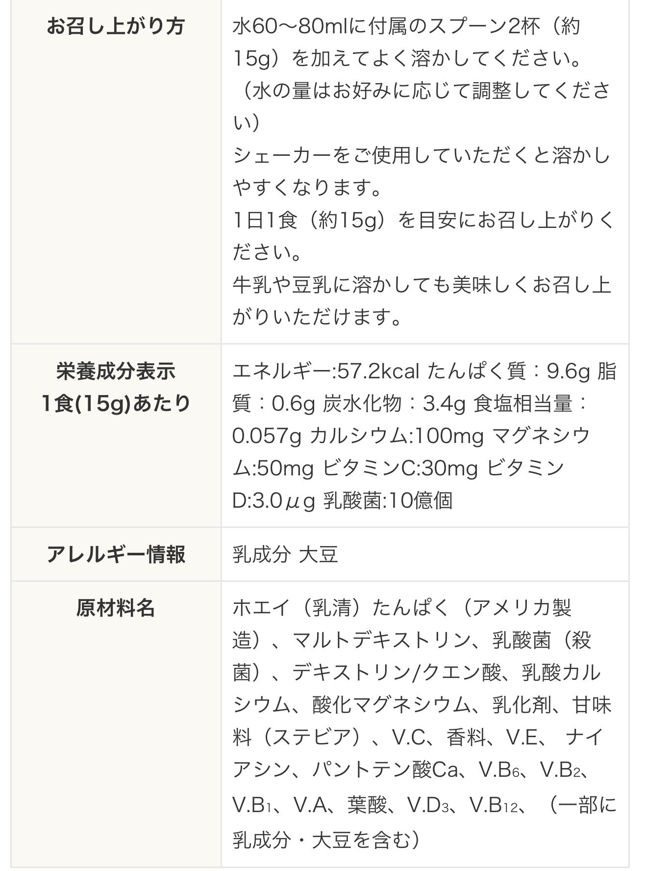 水60~80mlに付属のスプーン2杯(約15g)を加えてよく溶かしてください。