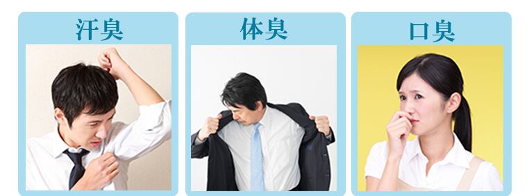 ストレス臭・疲労臭の原因は、たんぱく質や脂質・喫煙によるニコチン・アルコールなどの代謝過程でできるニオイ物質が、血液と共に体内をめぐり染み出るからです。原因物質はトイレのニオイと同じ「アンモニア」等で、常に身体から染み出ているため、拭いたり洗ったりしても根本的解決にはなりません。