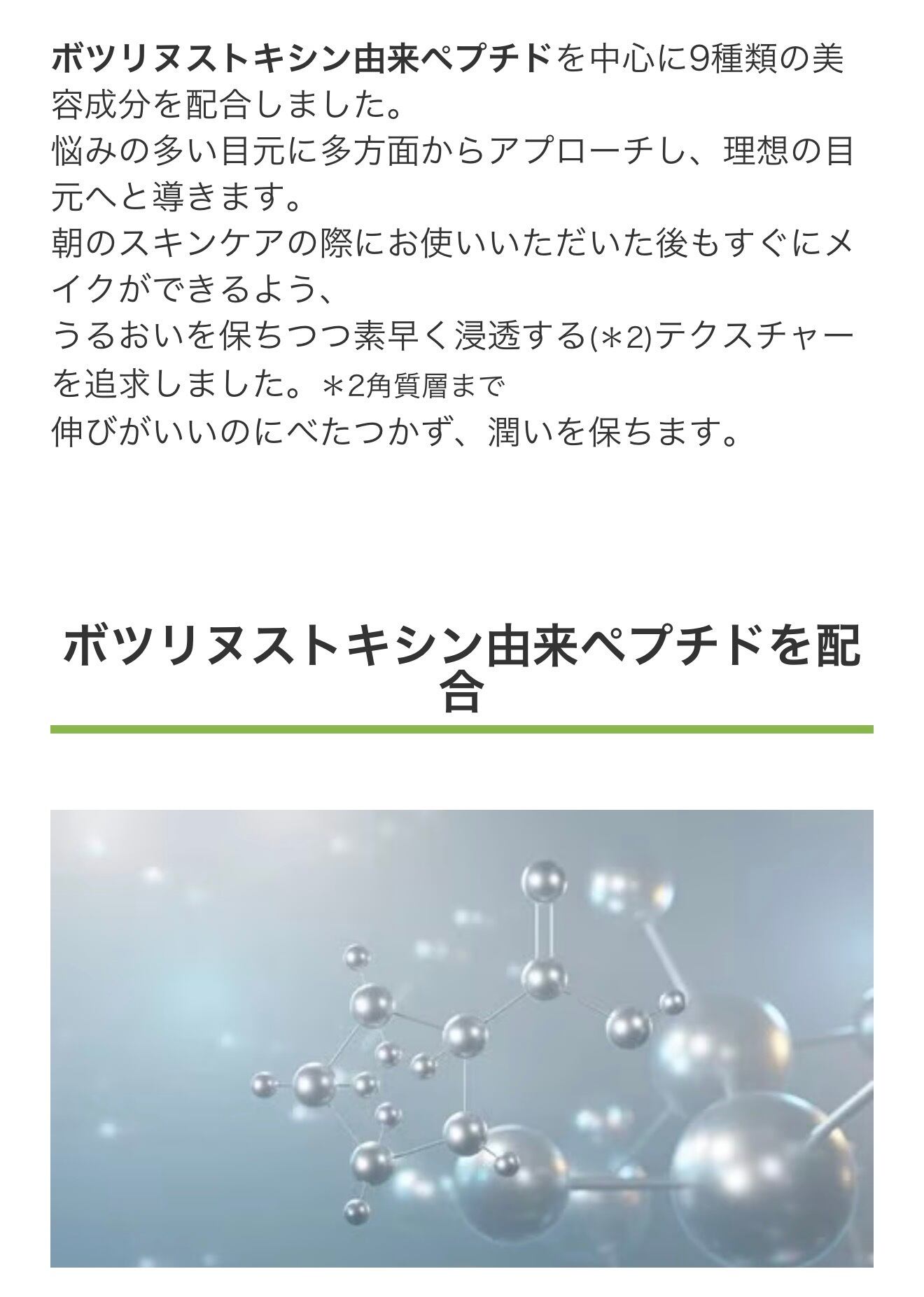 ボツリヌストキシン由来の成分を配合した塗るボトックスアイクリーム。