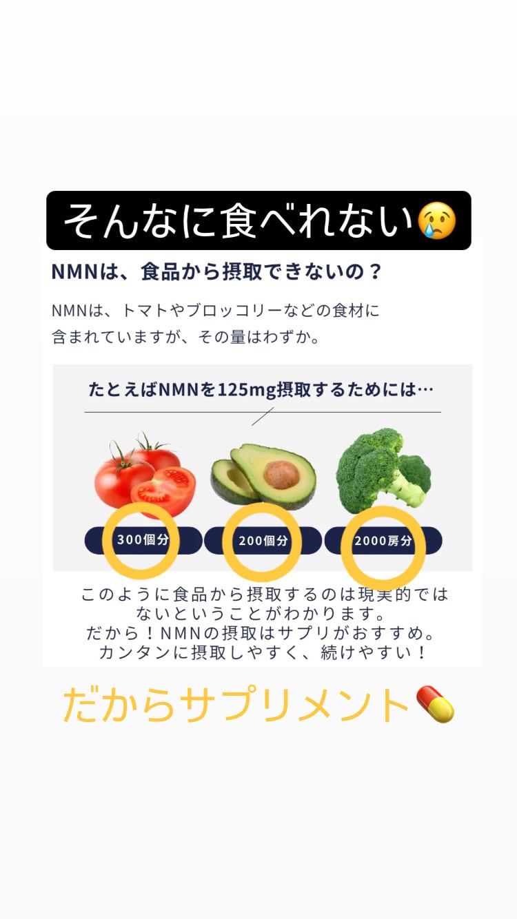NMNはブロッコリーや枝豆などに含まれていますが、微量なため十分な量を補うことは難しいと言われています。
